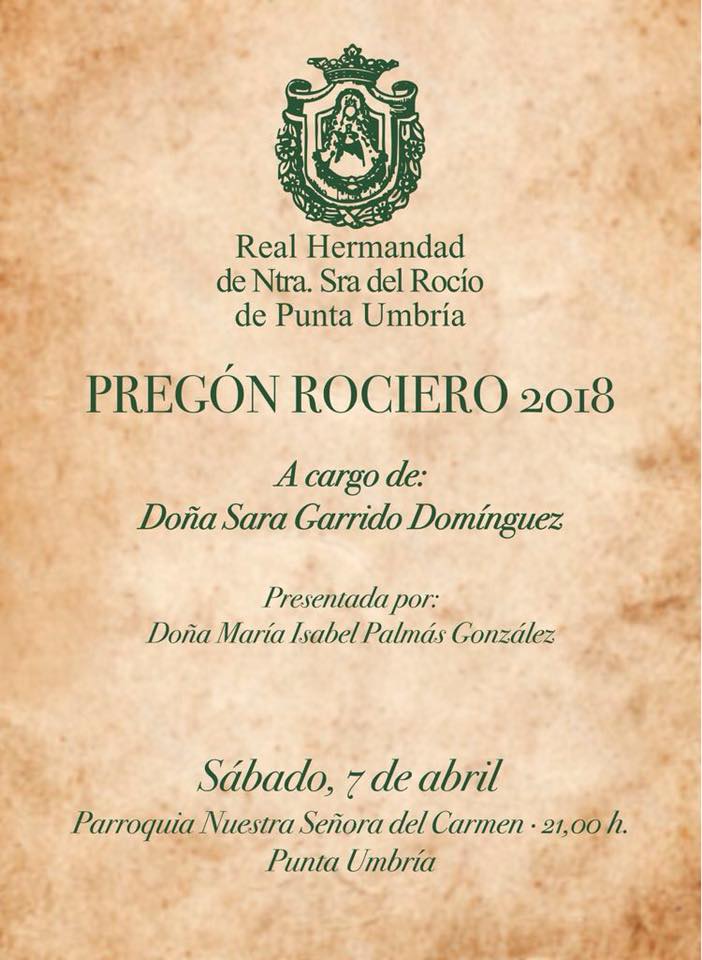 La Hermandad de Punta Umbría celebra Pregón Rociero 2018 a cargo de Doña Sara Garrido Domínguez