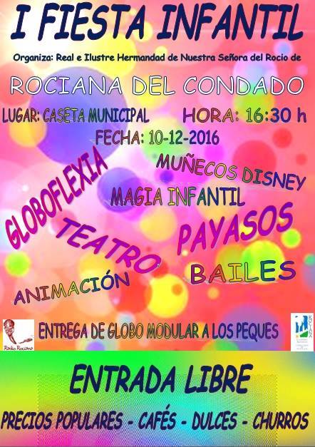 La Hermandad de Rociana organiza su I Fiesta Infantil el 10 de diciembre de 2016