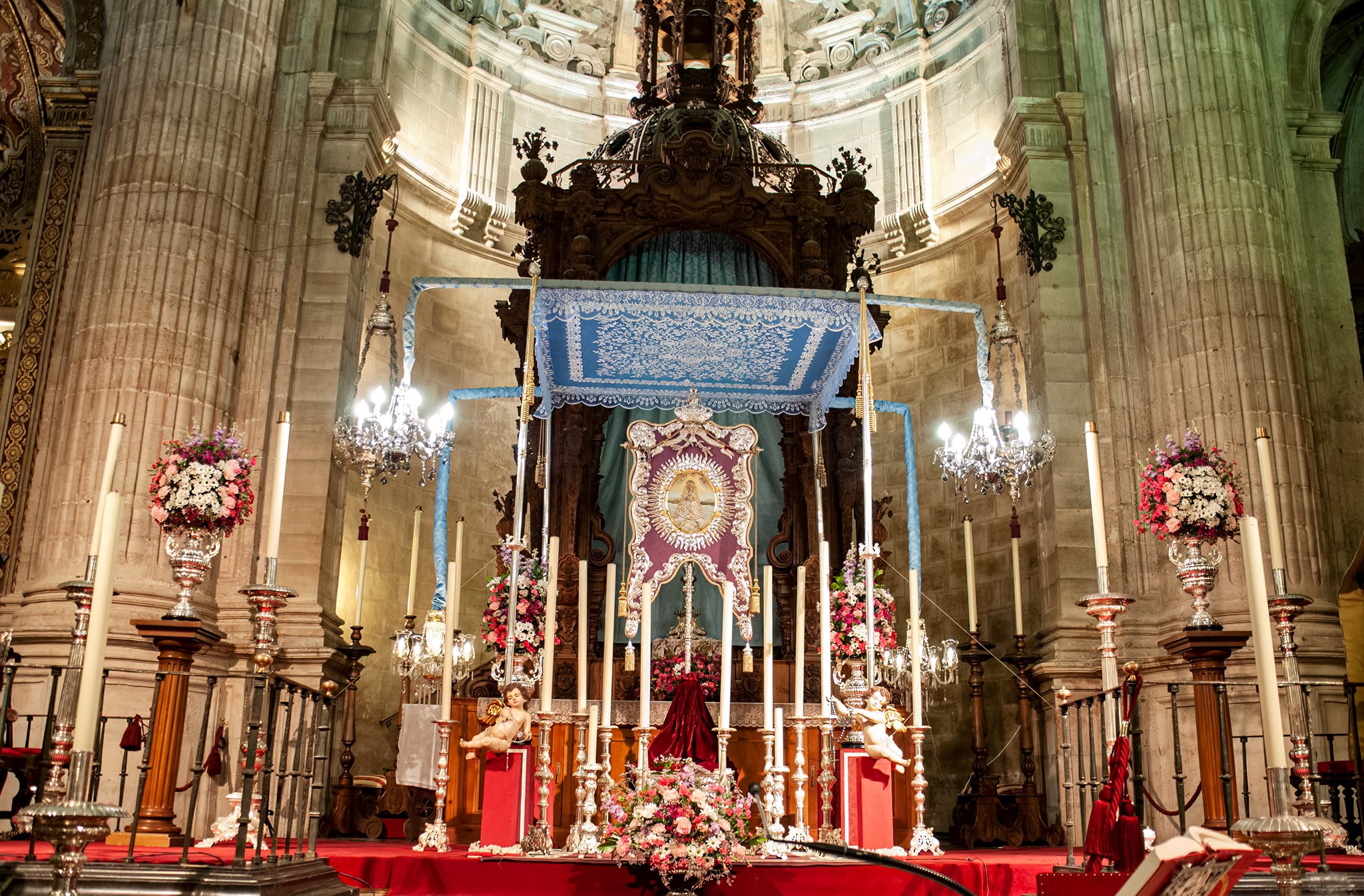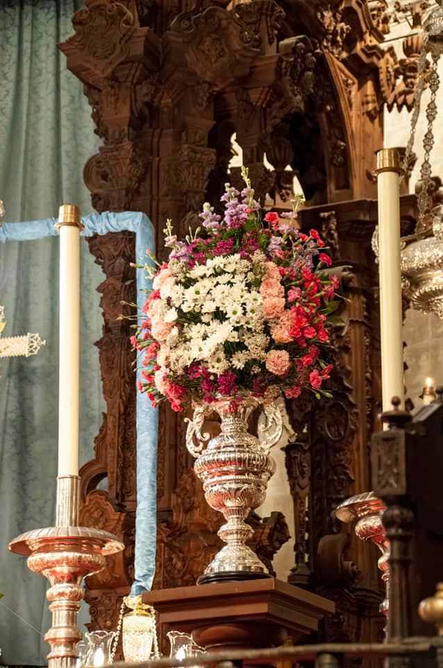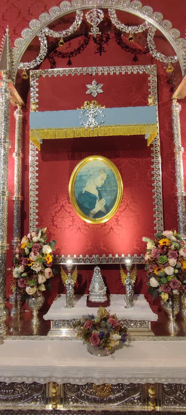 Del mismo modo el altar de nuestra sede Canónica de Santa María la Mayor se presenta con un ovalo de la Virgen niña que también sigue un patrón como en años anteriores a la letanía del Santísimo Rosario (Pureza de María).