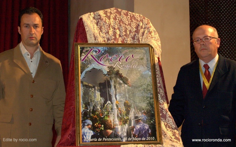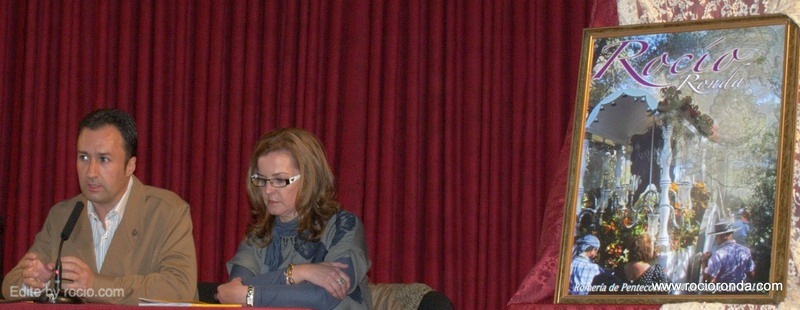Tras agradecer la asistencia de los presentes, el Hno. Mayor cedió la palabra al secretario, que dio lectura al acta del jurado del V Concurso del Cartel Anunciador de la Romería, a continuación intervino D. Rafael Rojas Racero, Hermano del Rocío, miembro de la actual junta de Gobierno y autor del cartel, que agradeció al jurado la elección y explicó brevemente el por qué del cartel, insistiendo en que es una fotografía de una de sus partes del camino favoritas, realizando la foto en una de las estrechuras por las que pasa la carreta del Simpecado, mezclándose la vegetación con los peregrinos y la carreta, todo ello con una tenue neblina del polvo que se levanta al paso de la Hdad. La fotografía se complementa con la inserción en su parte derecha de la medalla de la Hermandad en una composición realizada por ordenador. Tras estas palabras el Hno Mayor y el autor del cartel decubrieron la obra seleccionada que recibió una cariñosa ovación del público asistente.