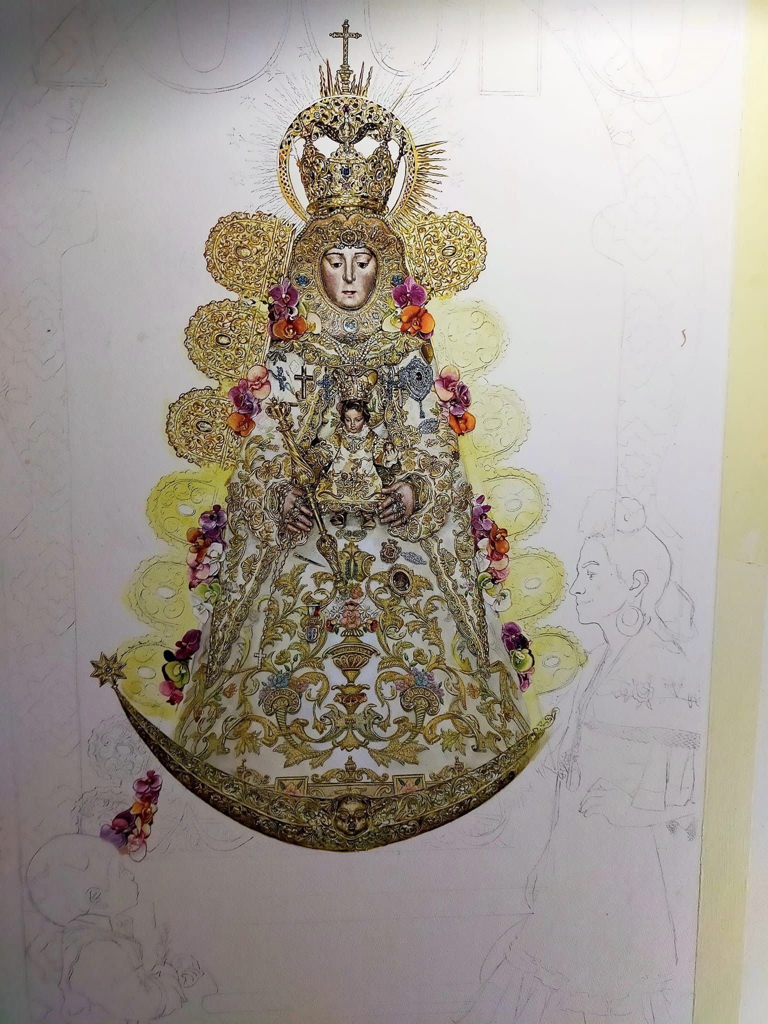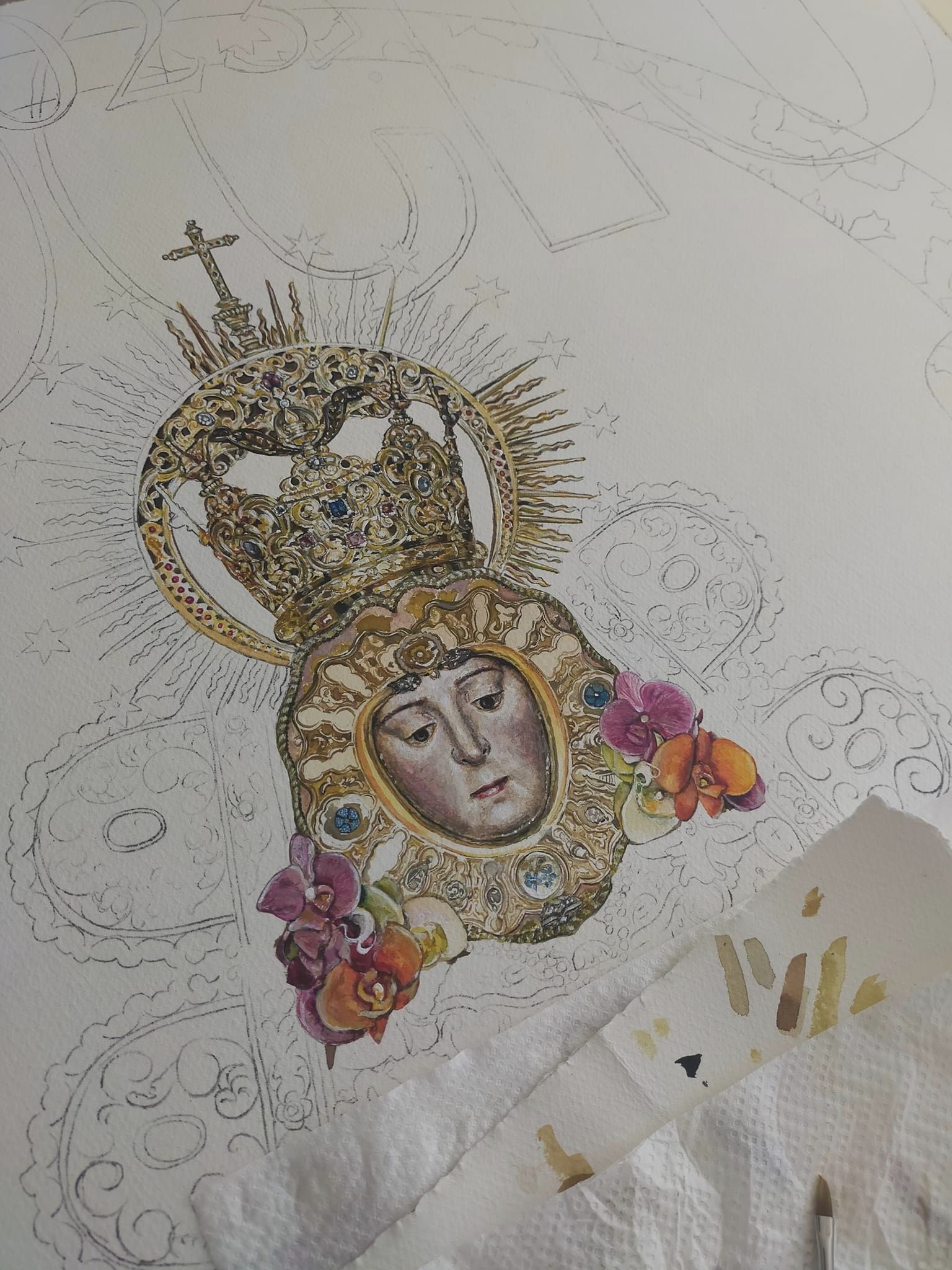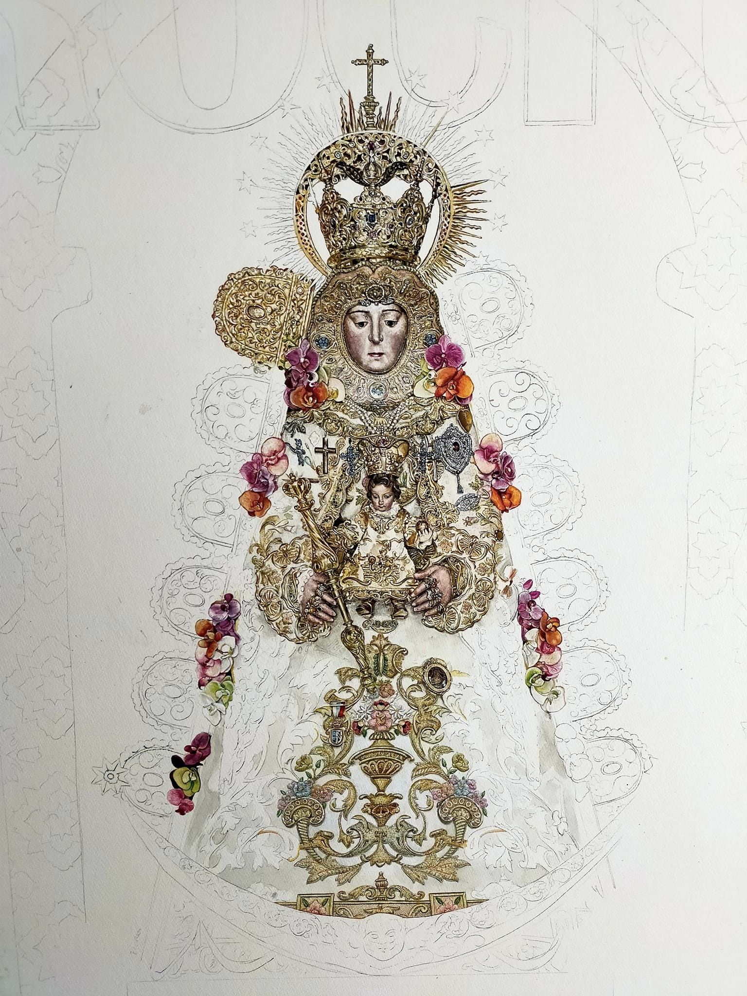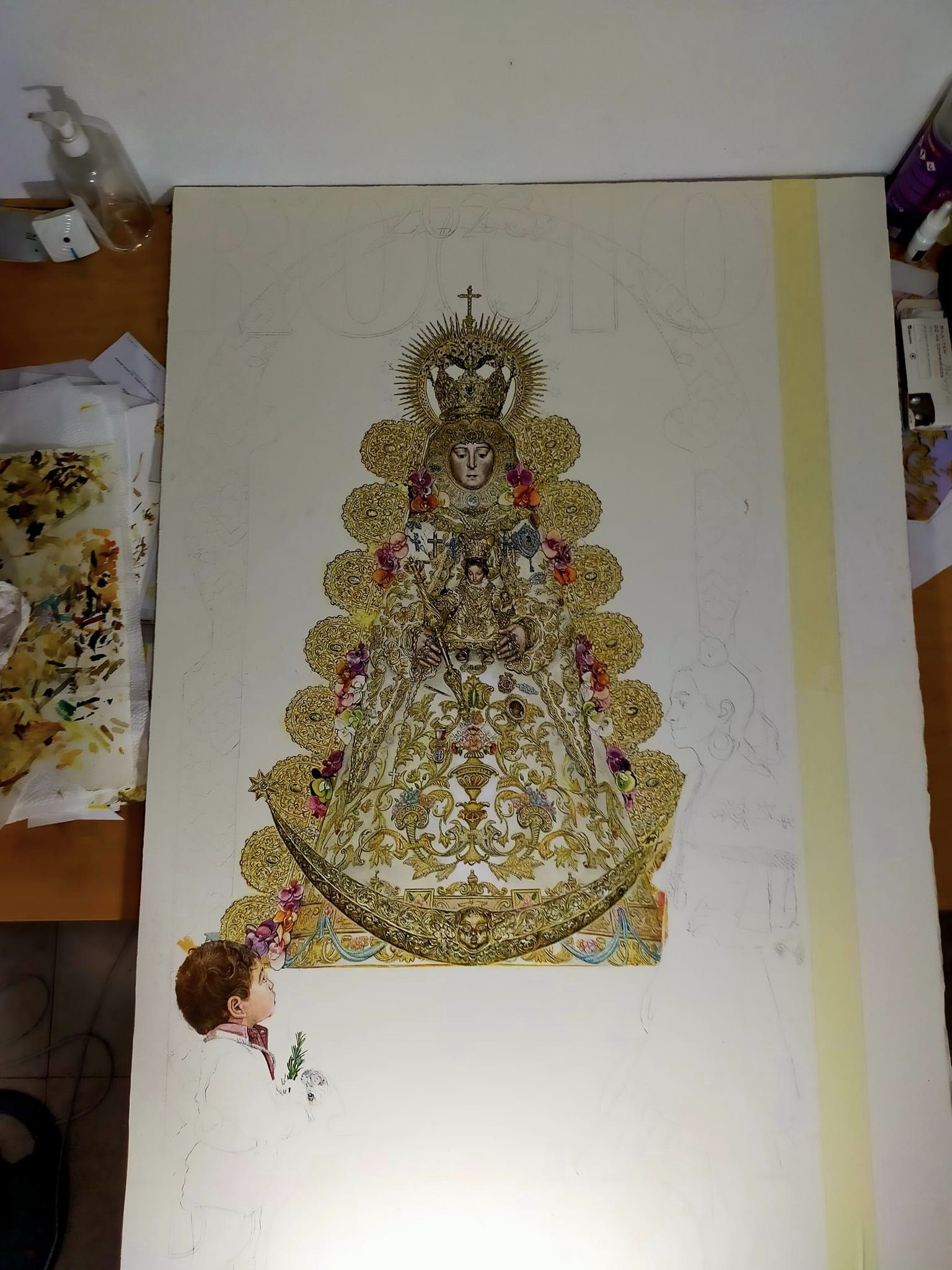 Aún desbordado y agradecido por la repercusión que ha tenido esta obra, comparto el proceso creativo y detalles del cartel del Rocío de Ronda 2023; Acuarela sobre papel, 120×60 cm.