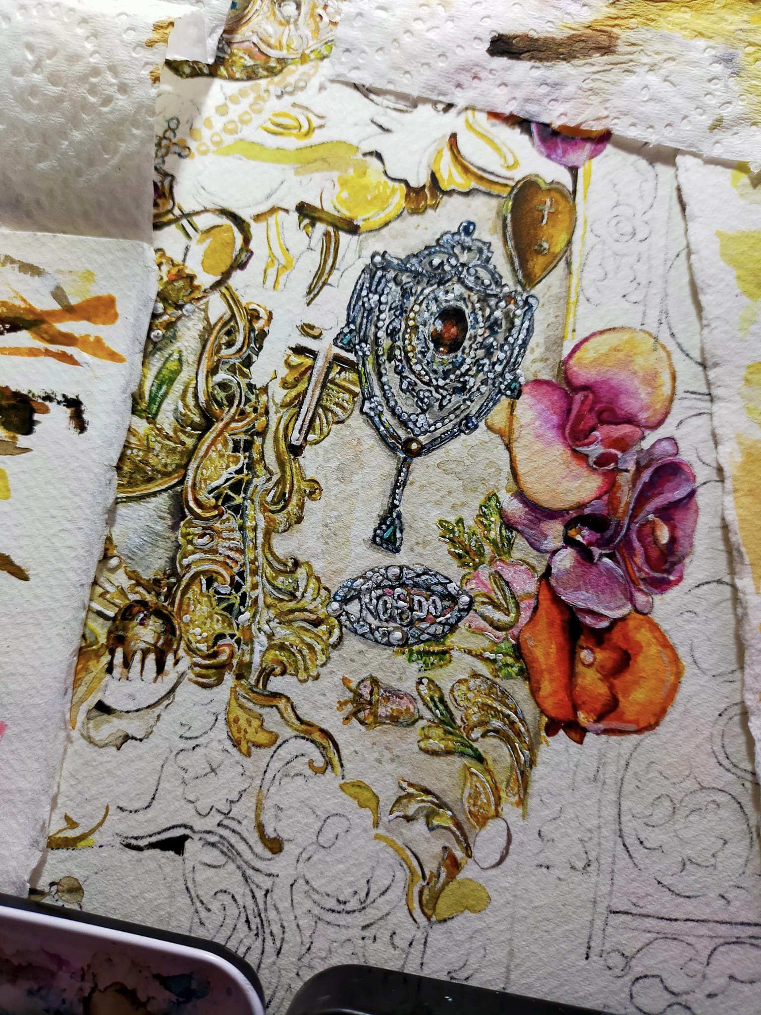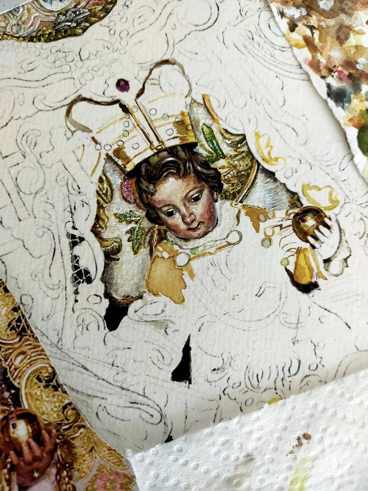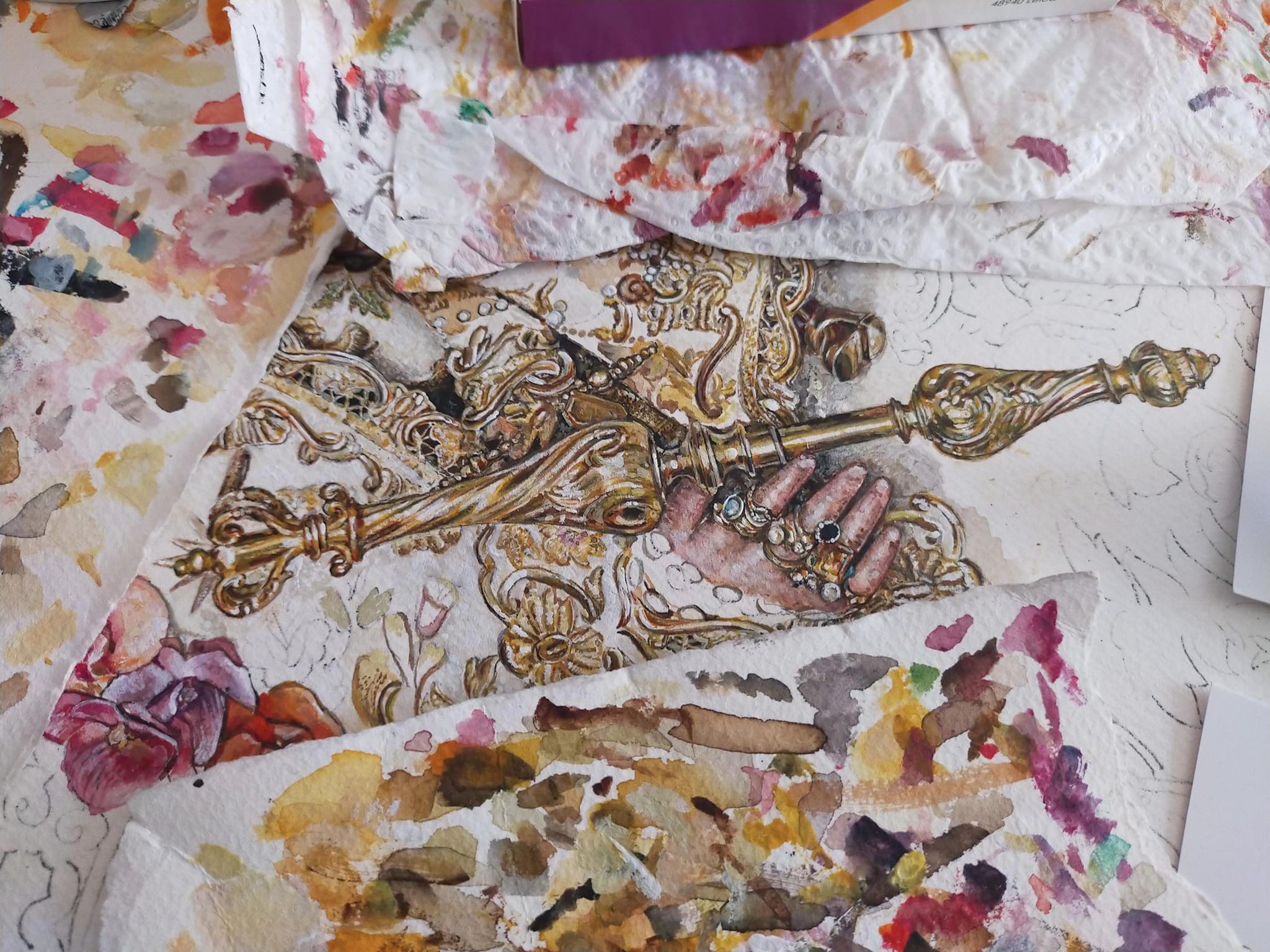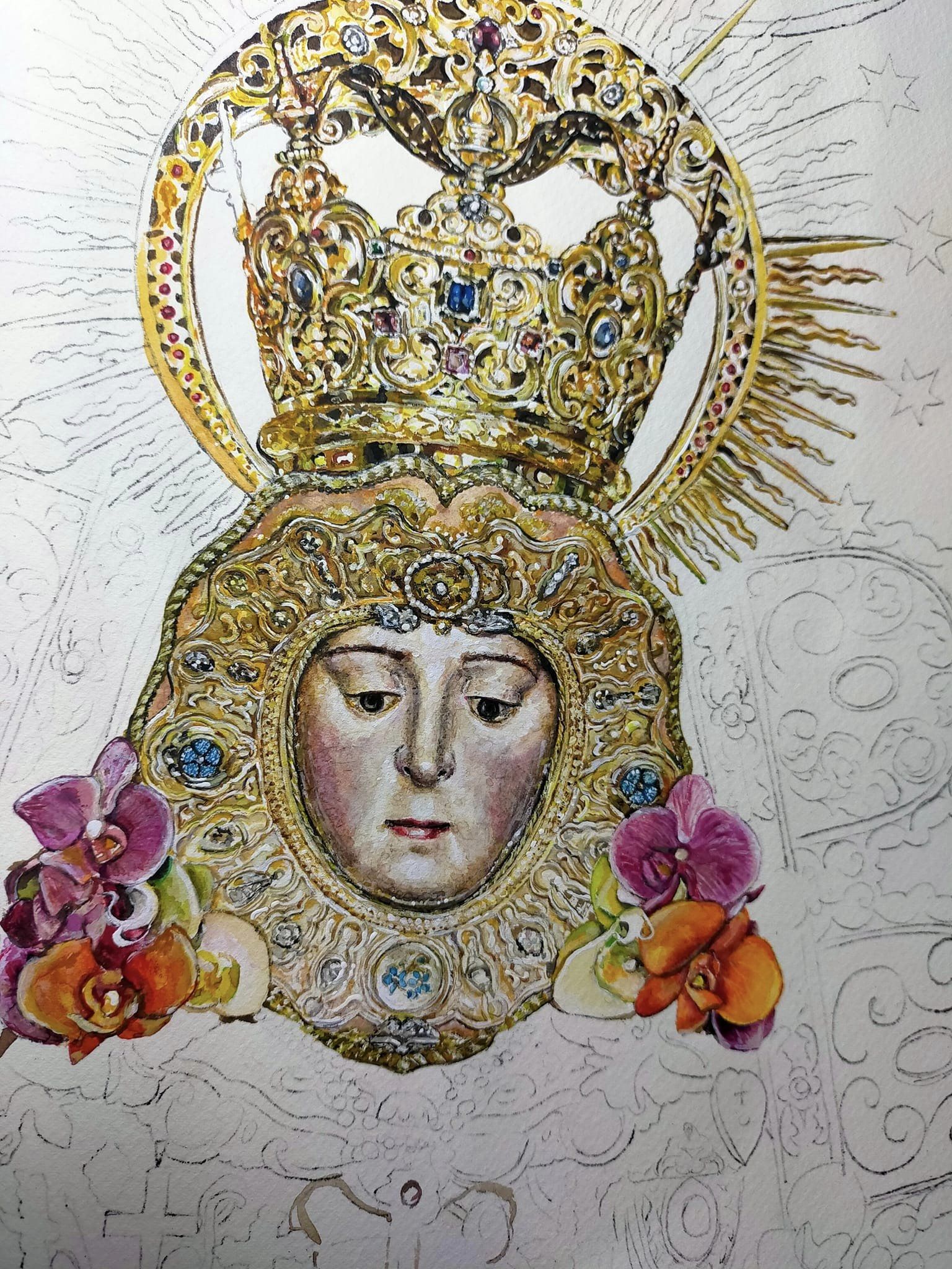 Aún desbordado y agradecido por la repercusión que ha tenido esta obra, comparto el proceso creativo y detalles del cartel del Rocío de Ronda 2023; Acuarela sobre papel, 120×60 cm.