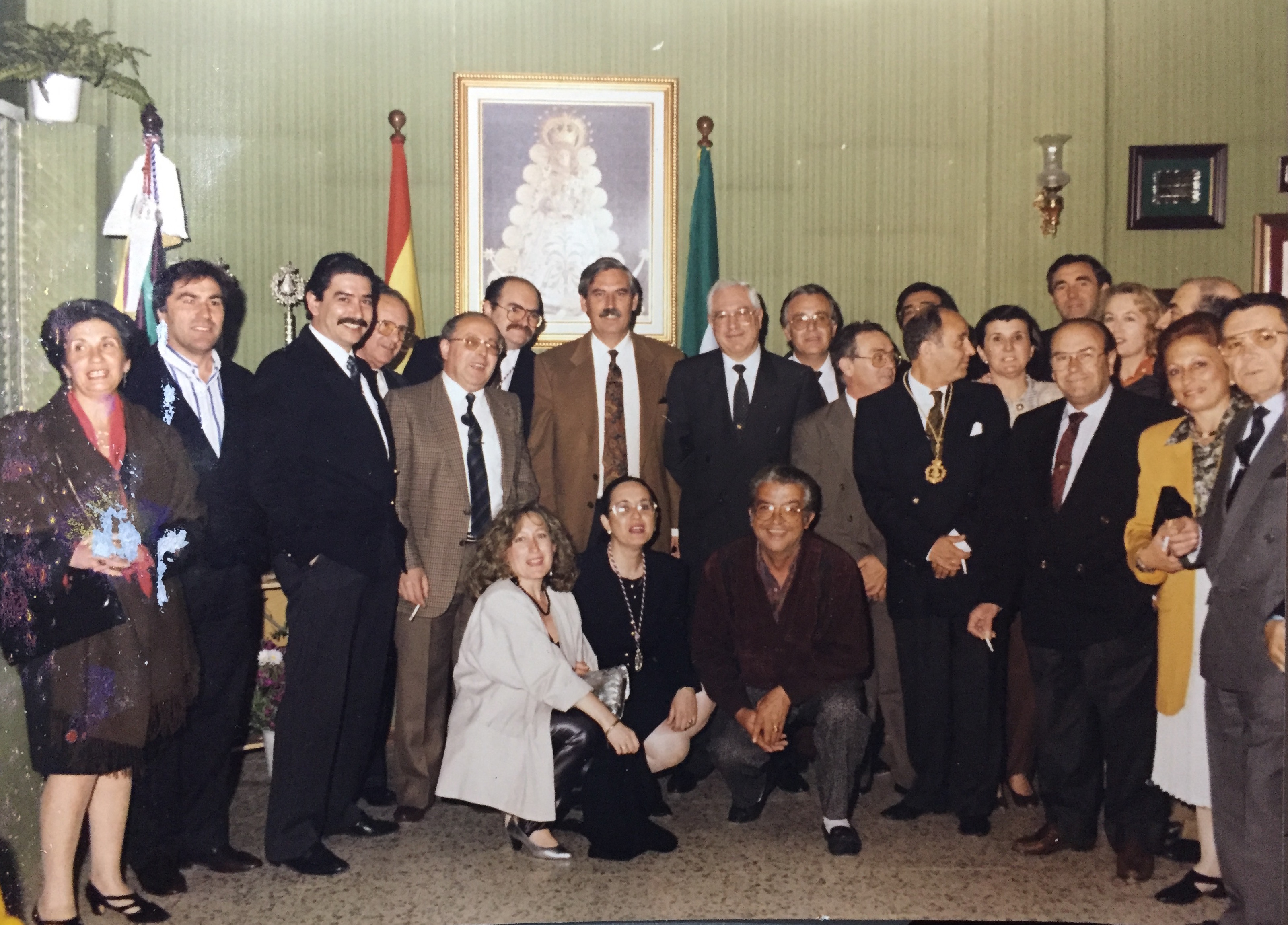 En esta foto, que considero histórica, desgraciadamente no están ya con nosotros algunos de los fotografiados: Ángel Díaz de la Serna, Miguel Palma, Miguel Ángel Martín y Antonio Martín, para ellos nuestro eterno agradecimiento por su buen hacer para con la Hdad. Os recordaremos siempre. En este Acto que celebraremos mañana os tendremos muy presentes junto a todos nuestros hermanos que gozan ya de la Presencia de Ntra. Madre, la Virgen del Rocío.
