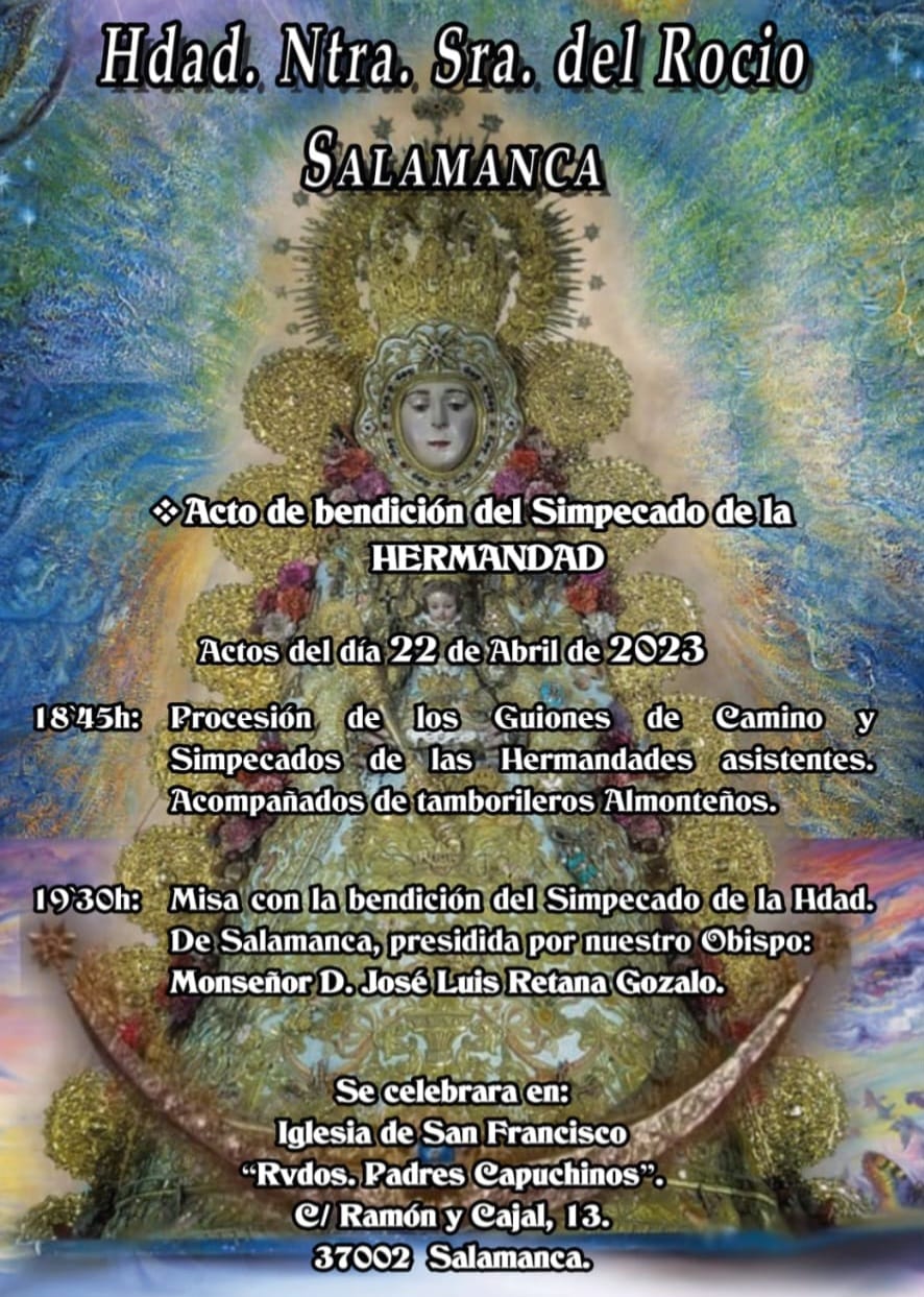 En la ciudad en la que resonó un viva a la Virgen del Rocío en 1915, en su histórica Universidad ( acaba de cumplir 800 años), cuando allí se encontraron, Manuel Siurot Rodríguez y Juan Francisco Muñoz y Pabón, y que tuvo entre sus ilustres vecinos al que llegaría a ser Cardenal Primado de España, S.E.R. Msñor. Enrique Almaraz y Santos, natural de El Vellés ( a 15 kms de Salamanca). El que coronó canonicamente a la Virgen del Rocío el 8 de junio de 1919.