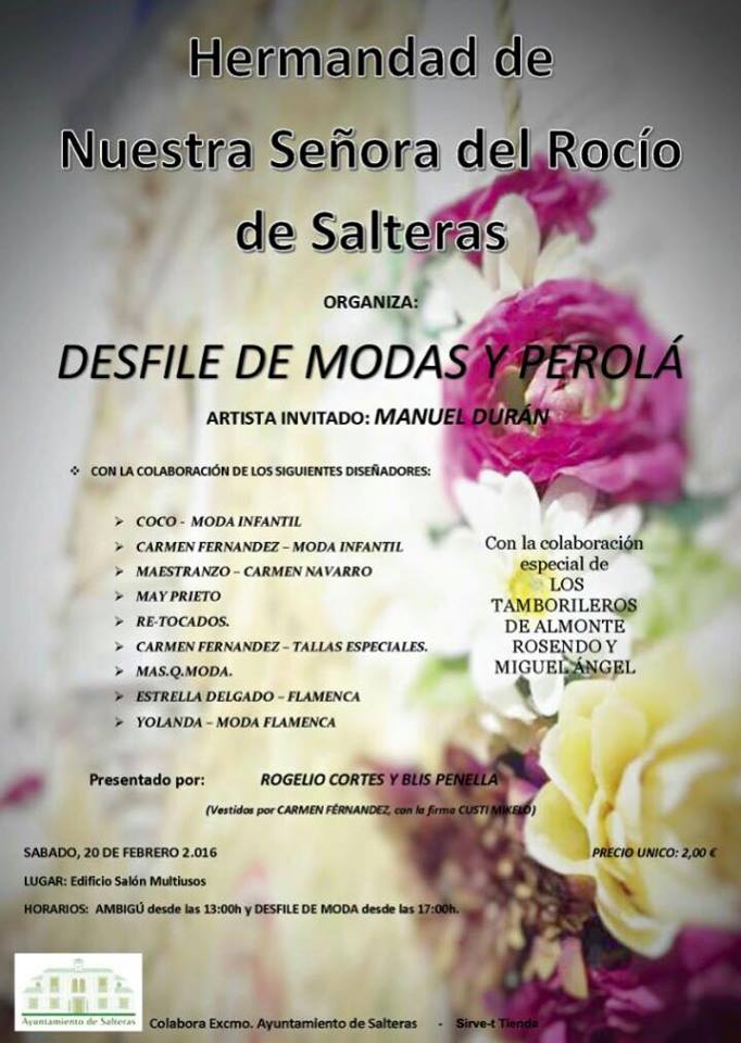 La Hermandad de Salteras organiza un Desfile de Modas y Perolá el sábado 20 de febrero de 2016.
