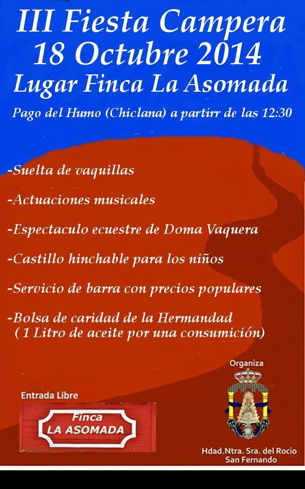 Hermandad de San Fernando – III Fiesta Campera el día 18 de octubre en la finca La Asomada.