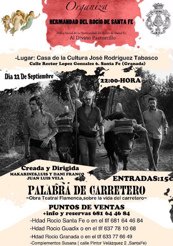 La Hermandad de Santa Fe organiza la celebración de la obra teatral: Palabra de Carretero el día 22 de septiembre de 2017