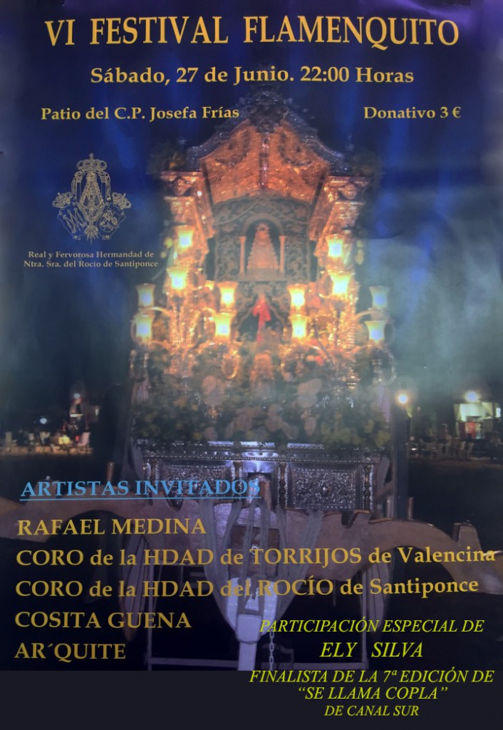 La Hermandad de Santiponce organiza el VI Festival Flamenquito el sábado 27 de junio de 2015.