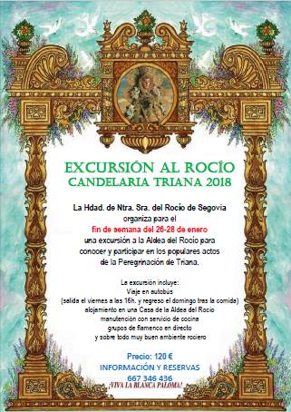La Hermandad de Segovia organiza una Excursión al Rocío para los días 26 al 28 de enero de 2018