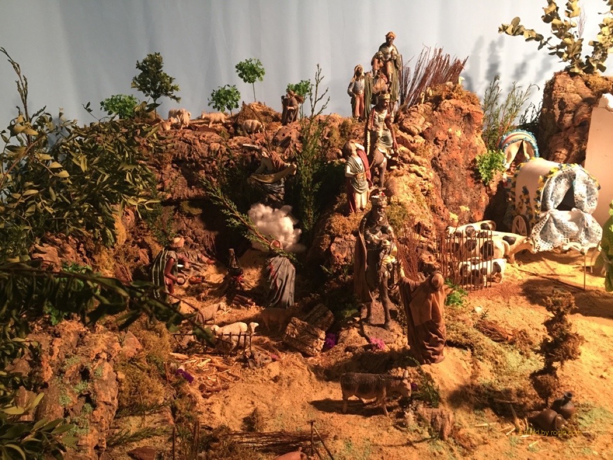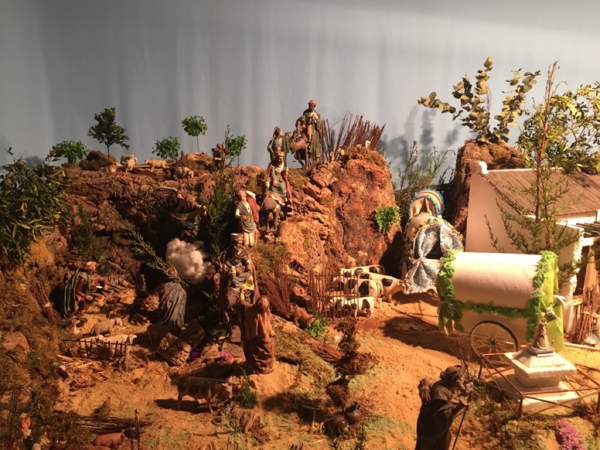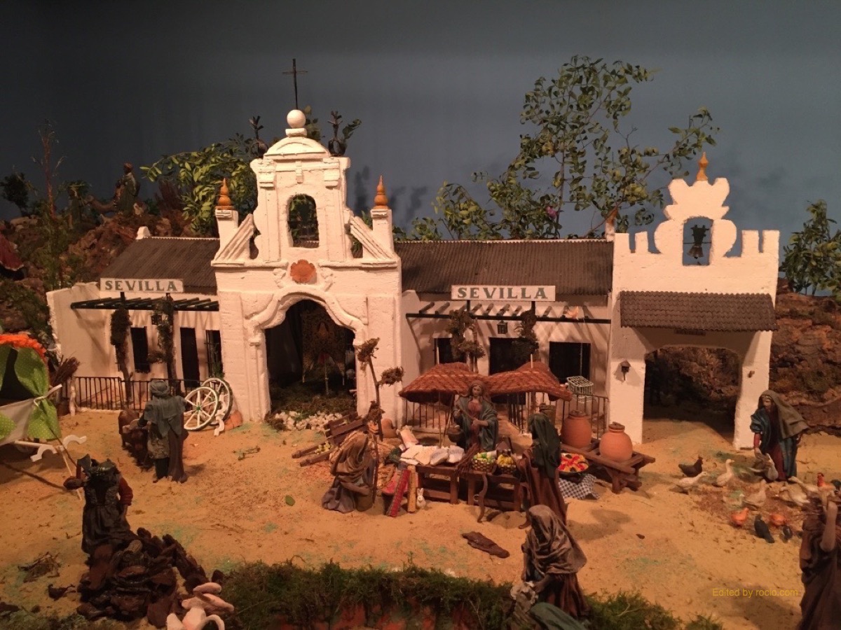 La Hermandad de Sevilla expone su Belén en el patio de los naranjos de la iglesia de El Salvador en estos días de Navidad y organiza para el sábado 12 de diciembre una Zambomba.