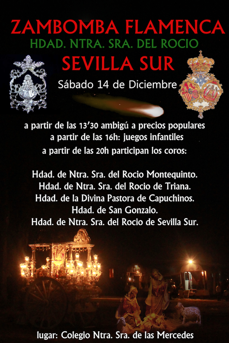 La Hdad. de Sevilla Sur organiza el próximo sábado día 14 de diciembre una Gran Zambomba Flamenca.