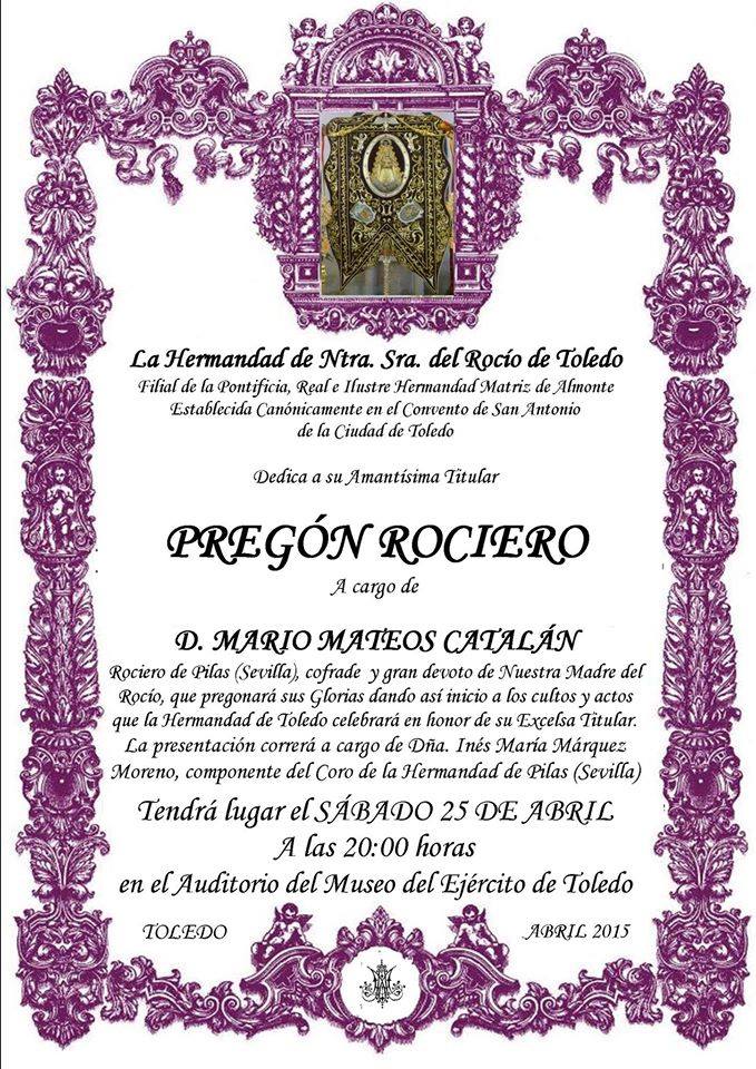 Hermandad de Toledo – Pregón Rociero a cargo de Mario Mateos.