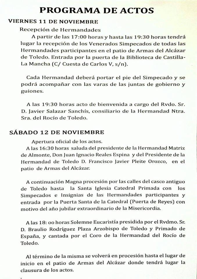 ROCÍO DE LA MISERICORDIA – TOLEDO, SÁBADO 12 DE NOVIEMBRE DE 2016