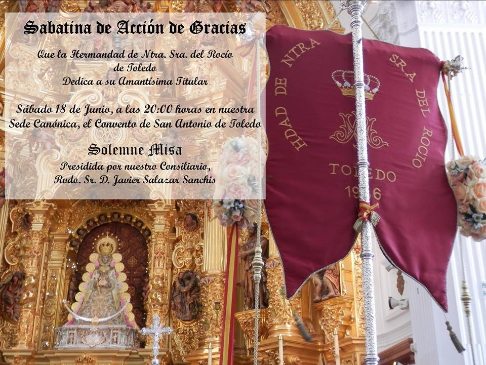 La Hermandad de Toledo celebra su Sabatina de Acción de Gracias el sábado 18 de junio de 2016