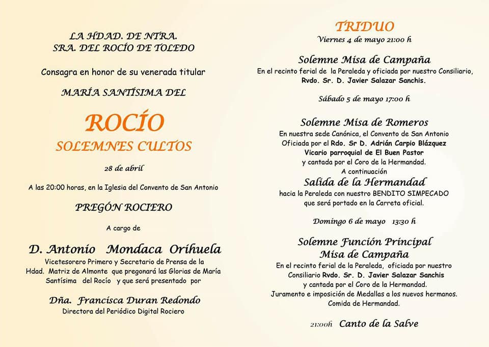 La Hermandad de Toledo celebra Solemnes Cultos 2018