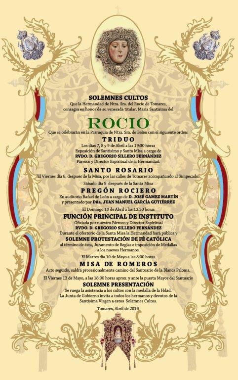 La Hermandad de Tomares organiza Solemnes Cultos Preparatorios de la Romería 2016.