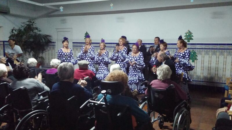 Nuestro Coro viene realizando por estas fechas pequeñas actuaciones benéficas en RESIDENCIAS DE MAYORES, la última en la del Rosario de Torrejón. Nuestro desinteresado coro animó a esas personas tan especiales haciéndoles pasar un buen rato escuchando sevillanas y villancicos.