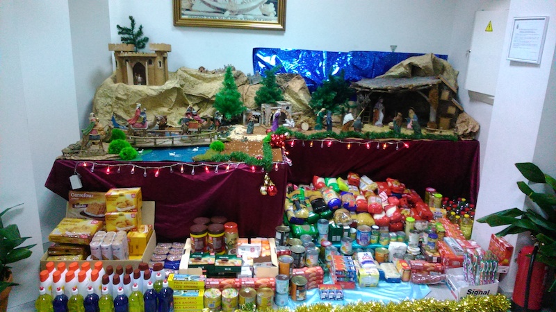 Debajo del Belén de nuestra sede se están almacenando alimentos en la Operación KILO LITRO, y ya van casi 300 kilos de comida que se destinarán a Cáritas.