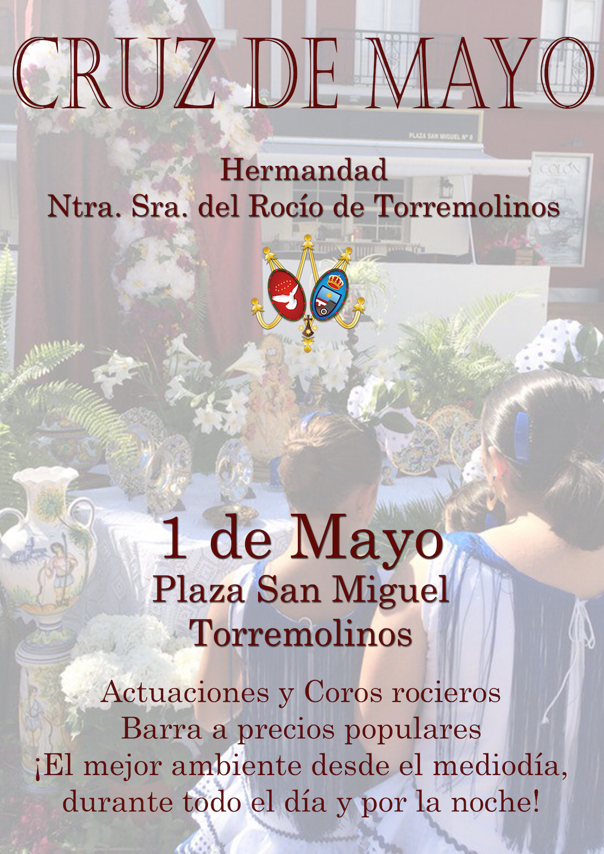 La Hermandad Rociera de Torremolinos organiza para el próximo viernes 1 de mayo de 2015 su tradicional Cruz de Mayo en la Plaza San Miguel.
