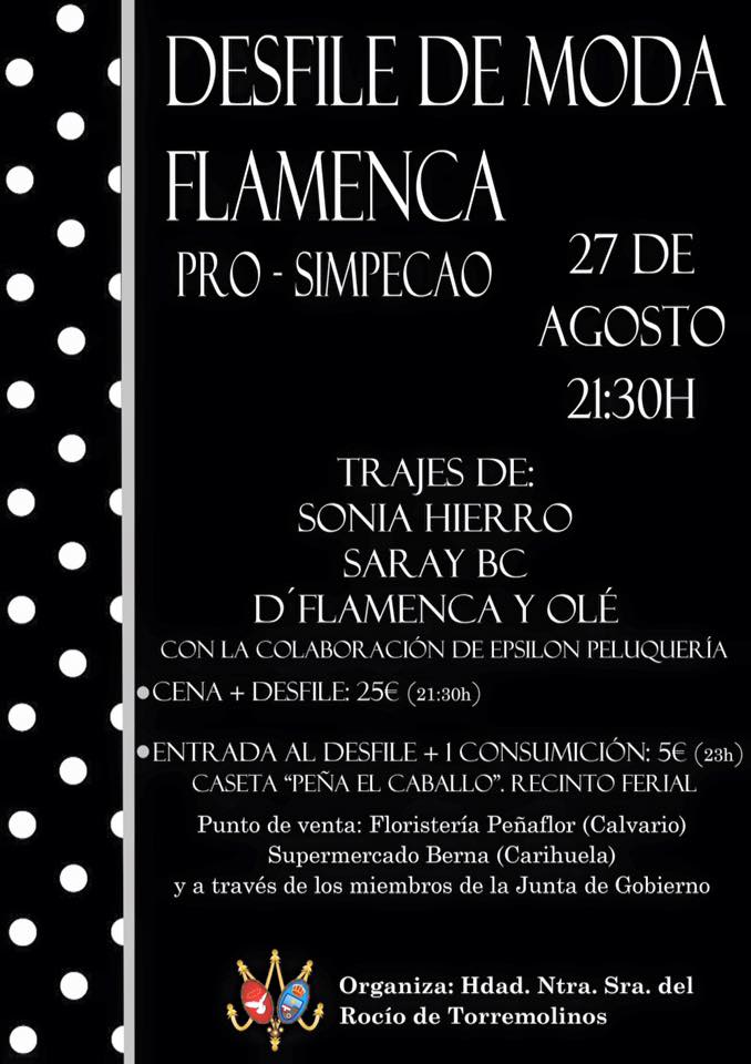 La Hermandad de Nuestra Sra. del Rocío de Torremolinos ha organizado para el próximo 27 de agosto un «Desfile de Moda Flamenca» en la Caseta de la Peña El Caballo (recinto ferial), con el objetivo de recaudar fondos para la realización del Simpecado.
