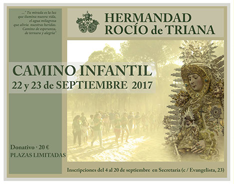 *Reunión informativa: El lunes 18 de septiembre, a las 20:00 h, se celebrará en el salón de nuestra Casa de Hermandad, una reunión informativa para los padres de los niños que pretendan asistir al Camino.