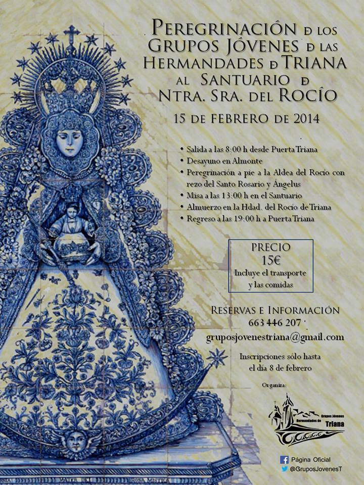Los Grupos Jóvenes de las Hermandades de Triana han organizado una Peregrinación en la Aldea del Rocío para que sirva como punto de encuentro para su formación humana y espiritual. Se realizará el próximo día 15 de febrero y podrán participar personas de todas las edades.