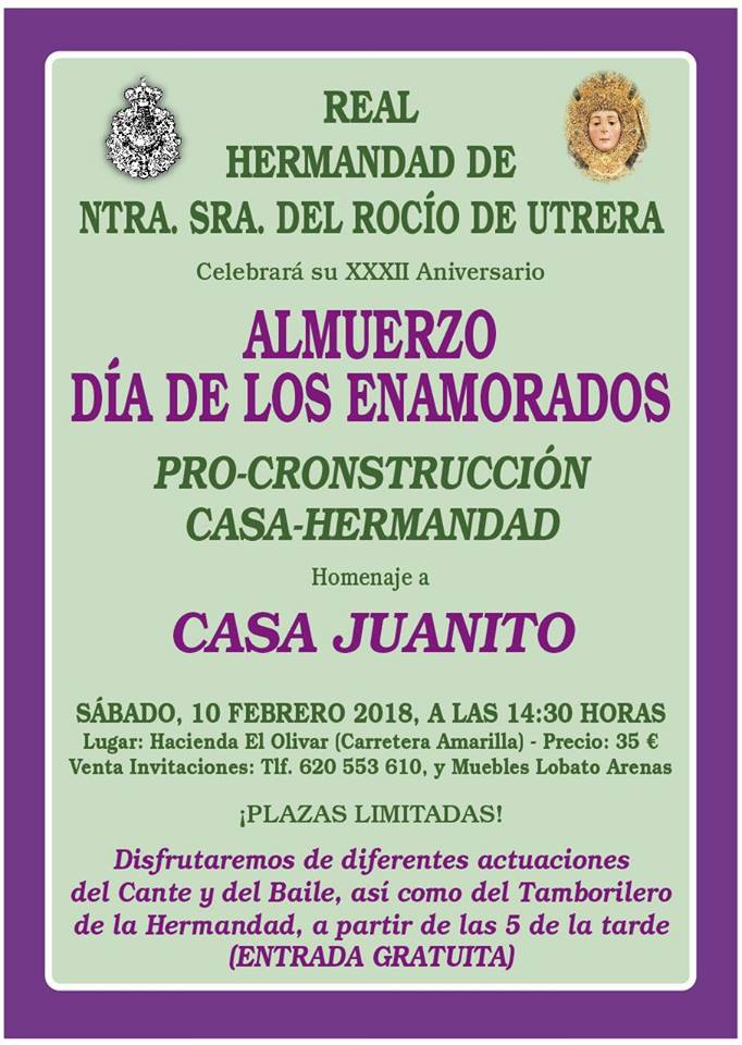 La Hermandad de Utrera organiza un Almuerzo el Día de los Enamorados