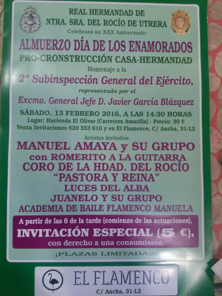 La Hermandad de Utrera organiza el Almuerzo San Valentín Pro Construcción Casa-Hermandad.