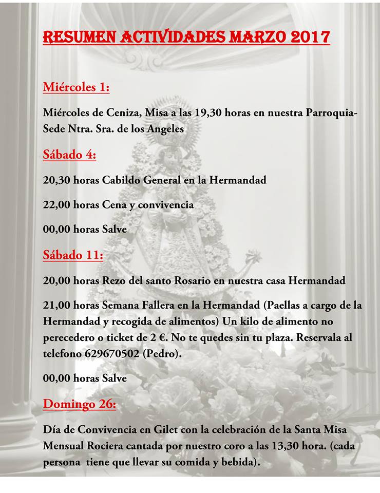 La Hermandad de Valencia publica sus Actividades del mes de marzo 2017