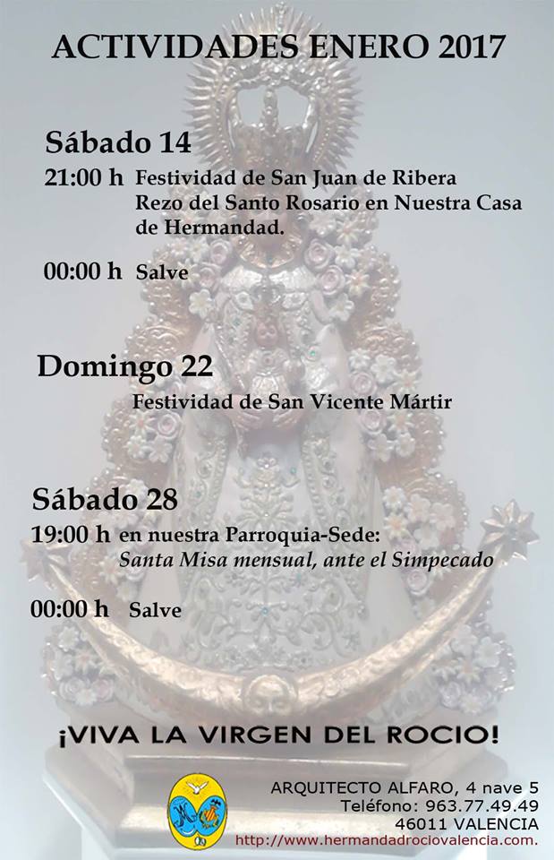 Hermandad de Valencia – Próximas Actividades del Mes de enero 2017.