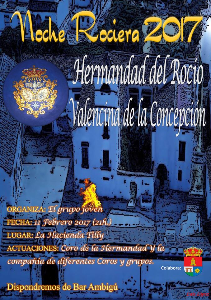 Nuestro GRUPO JOVEN informa que, a pesar de que las previsiones dan alguna posibilidad de lluvia para el sábado, la celebración de la NOCHE ROCIERA se llevará a cabo, tal y como estaba previsto, a partir de las 21:00 horas en la Hacienda de Tilly.