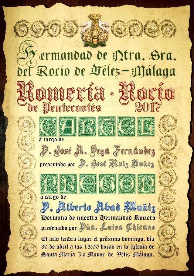 LaHermandad de Vélez-Málaga celebra Pregón del Rocío a cargo de D. Alberto Abad Muñiz y presentación del Cartel de José A. Vega