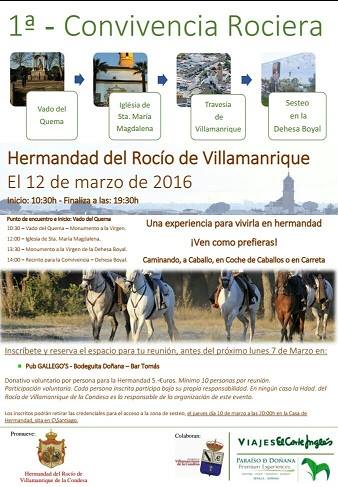 La Hermandad de Villamanrique organiza la 1ª Convivencia Rociera el sábado 12 de marzo de 2016.