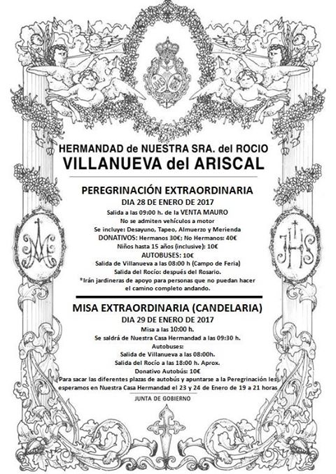 La Hermandad de Villanueva del Ariscal organiza su Peregrinación Extraordinaria al Rocío el 28 de enero de 2017