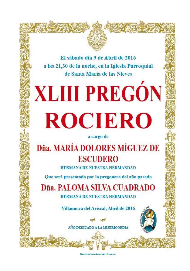 La Hermandad de Villanueva del Ariscal celebra el  XLIII Pregón Rociero a cargo de Mª Dolores Míguez de Escudero.