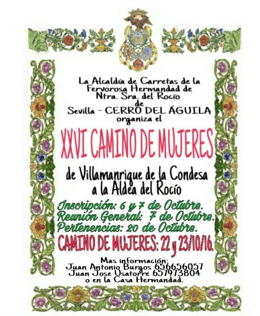 La Hermandad del Cerro del Águila organiza su XXVI Camino de Mujeres al Rocío para los días 6 y 7 de octubre de 2016
