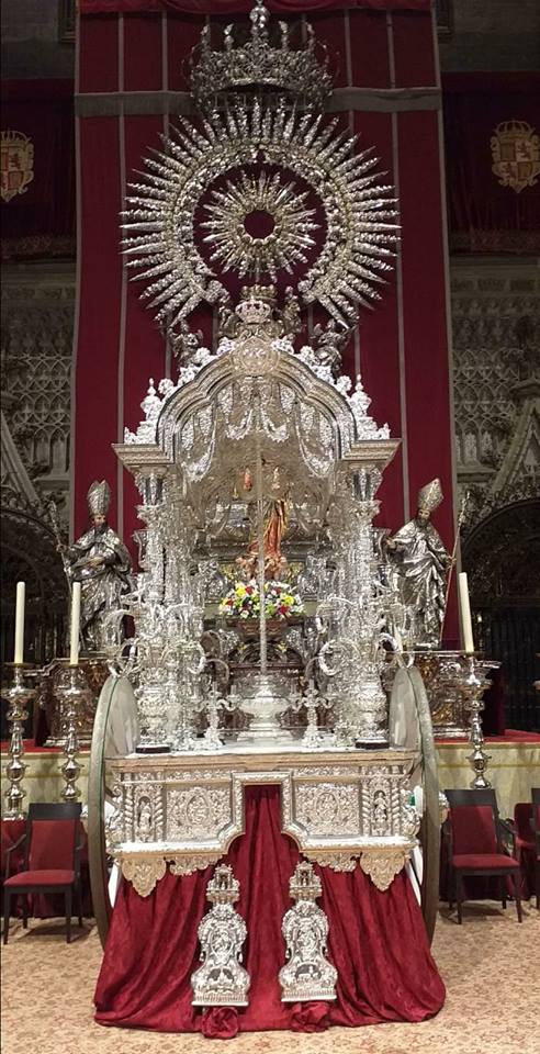 La carreta de la Hermandad del Rocío de la Macarena, cobija al Simpecado MACARENO, que está tarde llegará a la Catedral, para presidir el Pregón de las Glorias de SEVILLA.