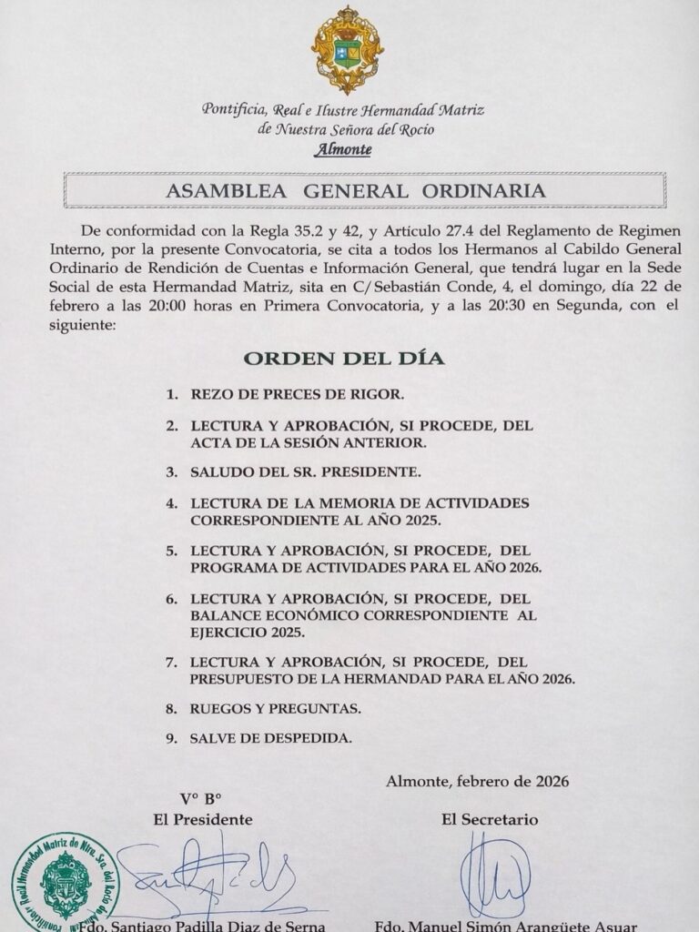 El próximo domingo 22 de febrero celebraremos la Asamblea General Ordinaria de Rendición de Cuentas e Información General.