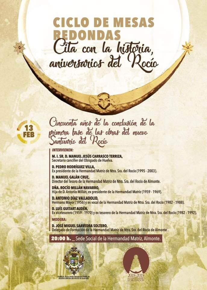 En el Ciclo, Citas con la historia. Aniversarios del Rocío, recordamos la memoria de unos hombres que llevaron a cabo una gran gesta histórica, llevados por su amor a la Virgen; promoviendo sin recursos, la construcción de un nuevo Santuario a la Virgen del Rocío, que diera cabida a una devoción en imparable crecimiento. Y será ocasión de presentar, la reedición de las Memorias de la construcción del nuevo Santuario, publicadas por el que fuera Presidente de la Matriz en aquellas fechas, Antonio Millán Pérez en 1996, reeditadas dentro de nuestra colección REGINA RORIS. A las 20,00 horas, en la casa de la Matriz.