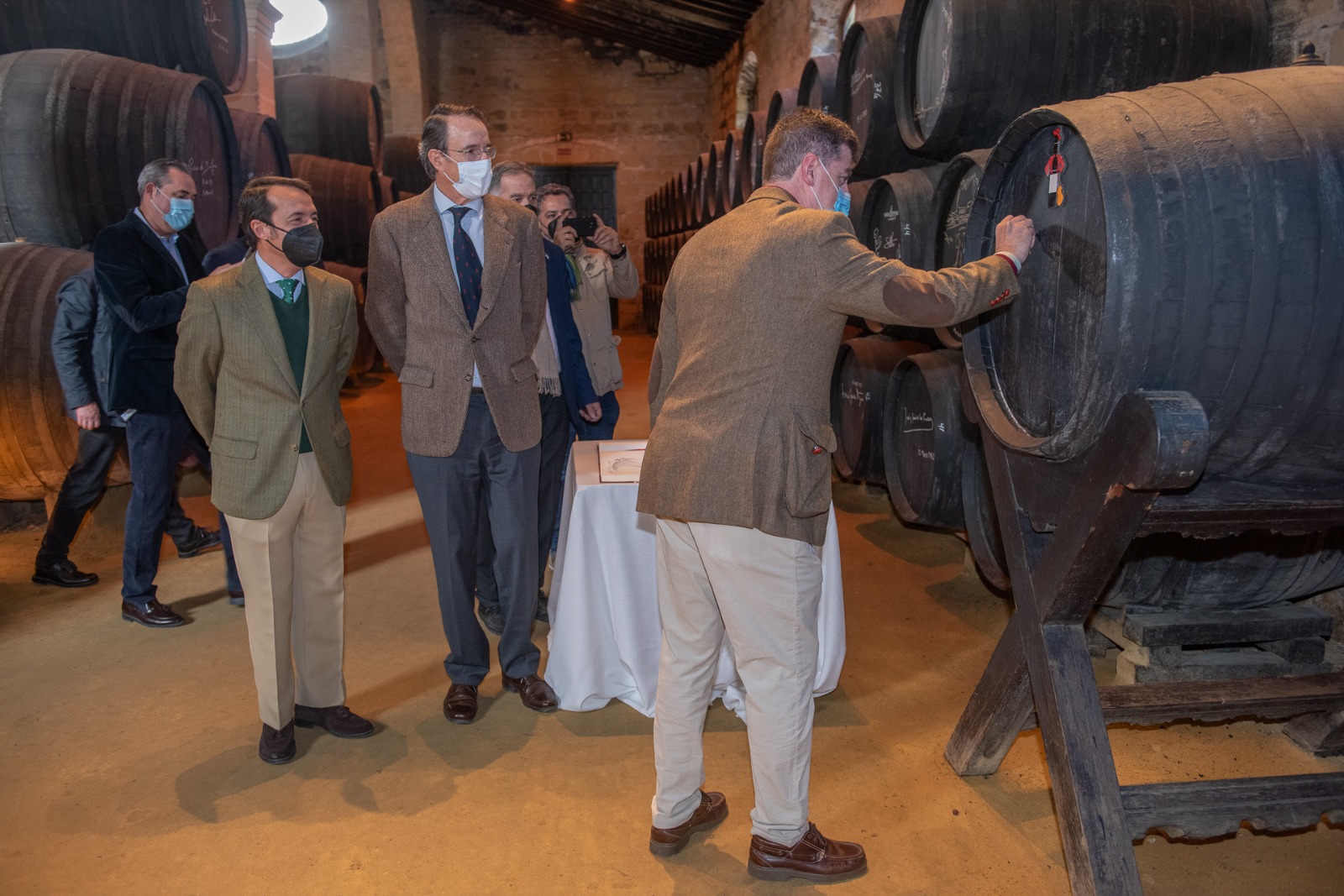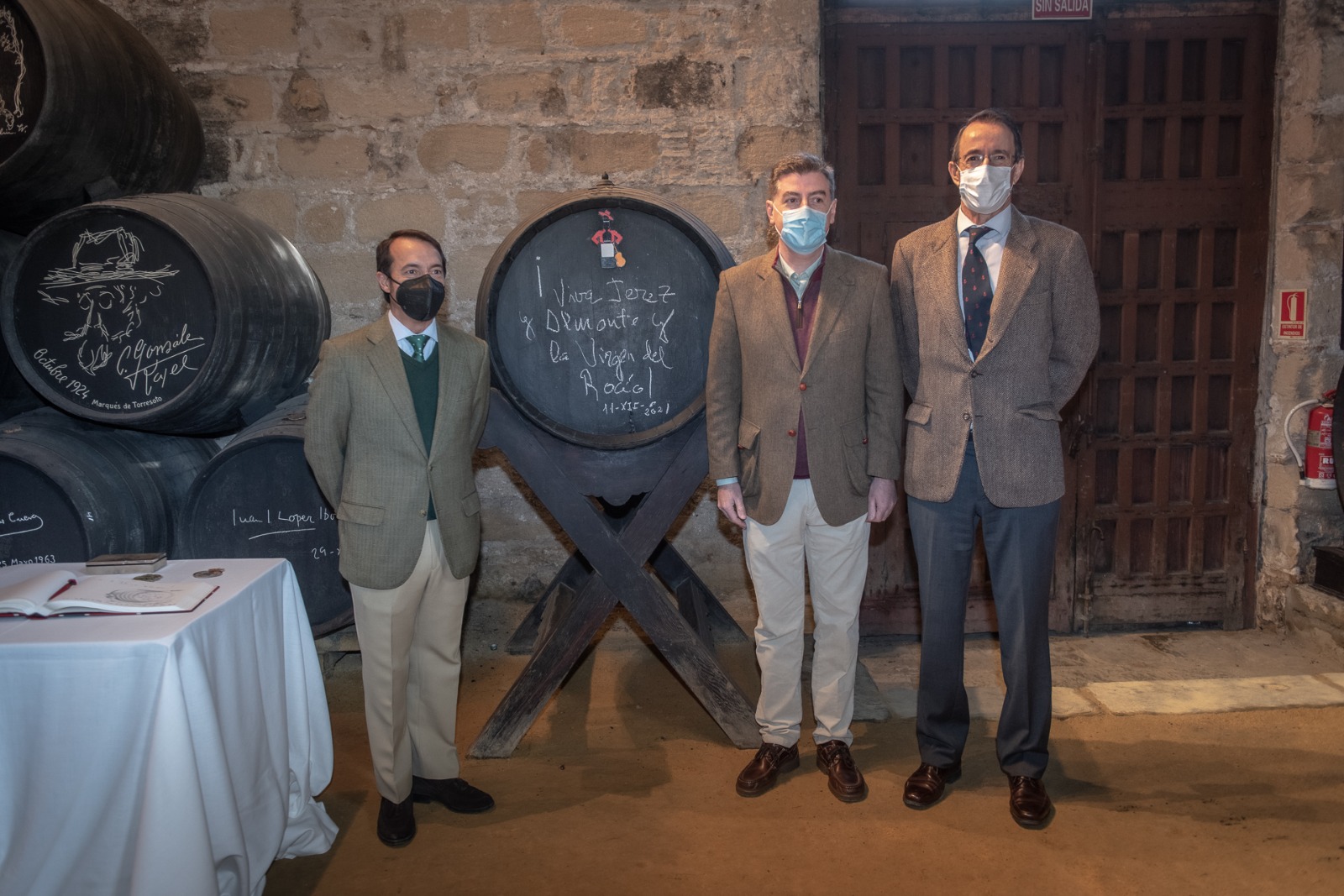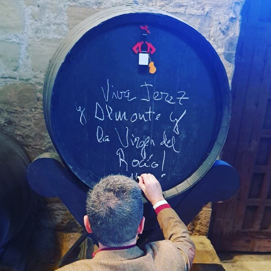 Ayer, en una jornada de convivencia memorable con la hermandad del Rocío de Jerez , hemos tenido el honor de firmar una bota en la bodega La Constancia de la firma González-Byass, donde se fundó la hermandad del Rocío en 1932, en honor de la devoción que nos une a la Virgen del Rocío. Mi gratitud a Joaquín Vallejo y a su junta y a Mauricio González-Gordon y López de Carrizosa, consejero delegado de la Compañía.