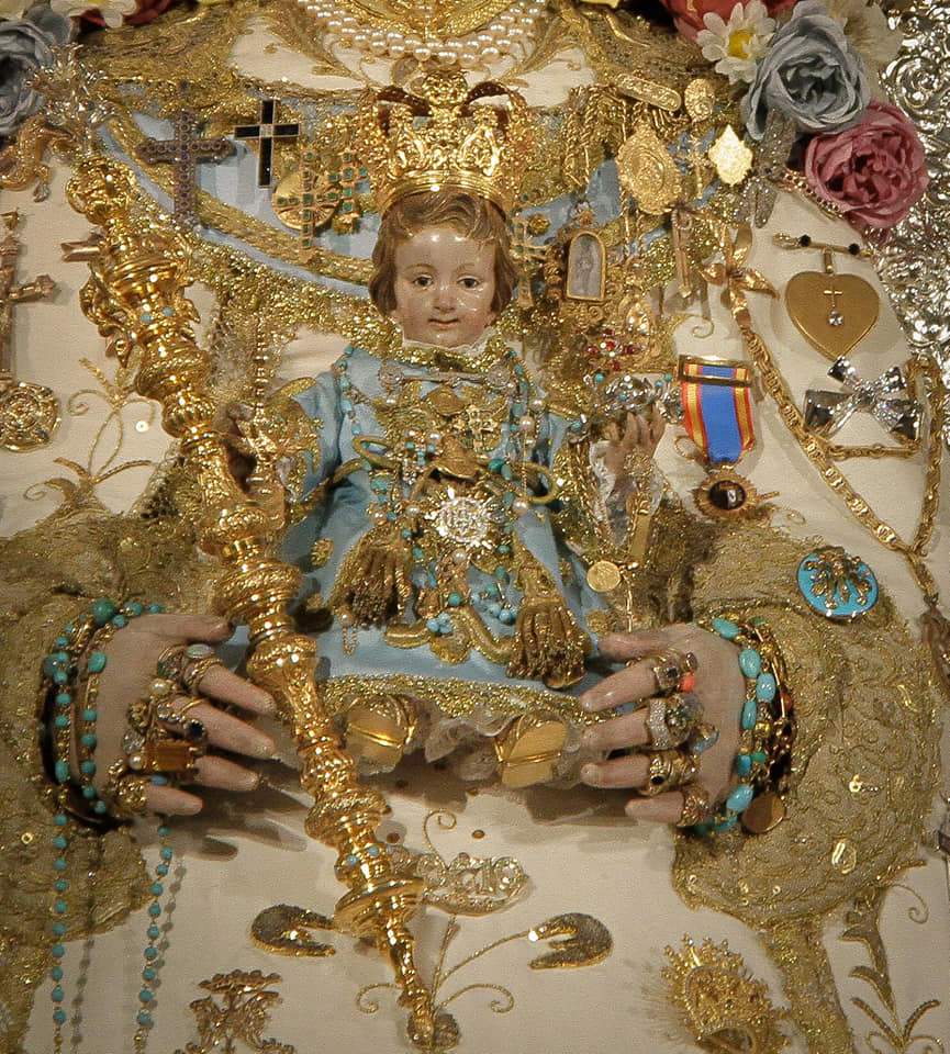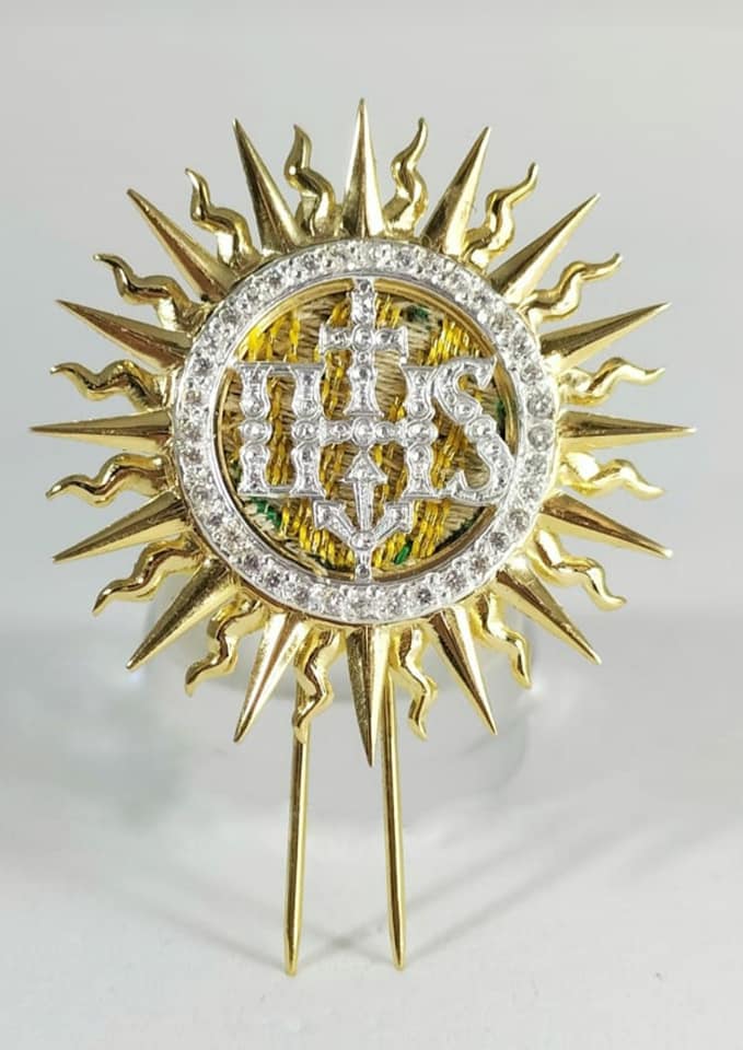 Coincidiendo con su peregrinación, la Hermandad del Rocío de Valencia ha regalado al Pastorcito un broche en forma de sol, de plata de ley chapada en oro y pedrería.