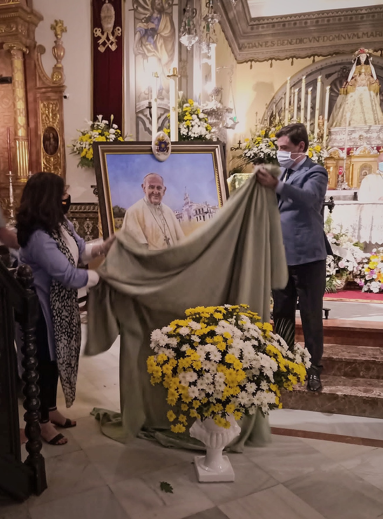 Tras la misa celebrada en conmemoración por el Centenario del título de Pontificia de la Hermandad Matriz, se ha presentado el retrato del Papa Francisco que se colocará junto al del Rey Felipe VI en la Sala de Cabildos de la Hermandad.