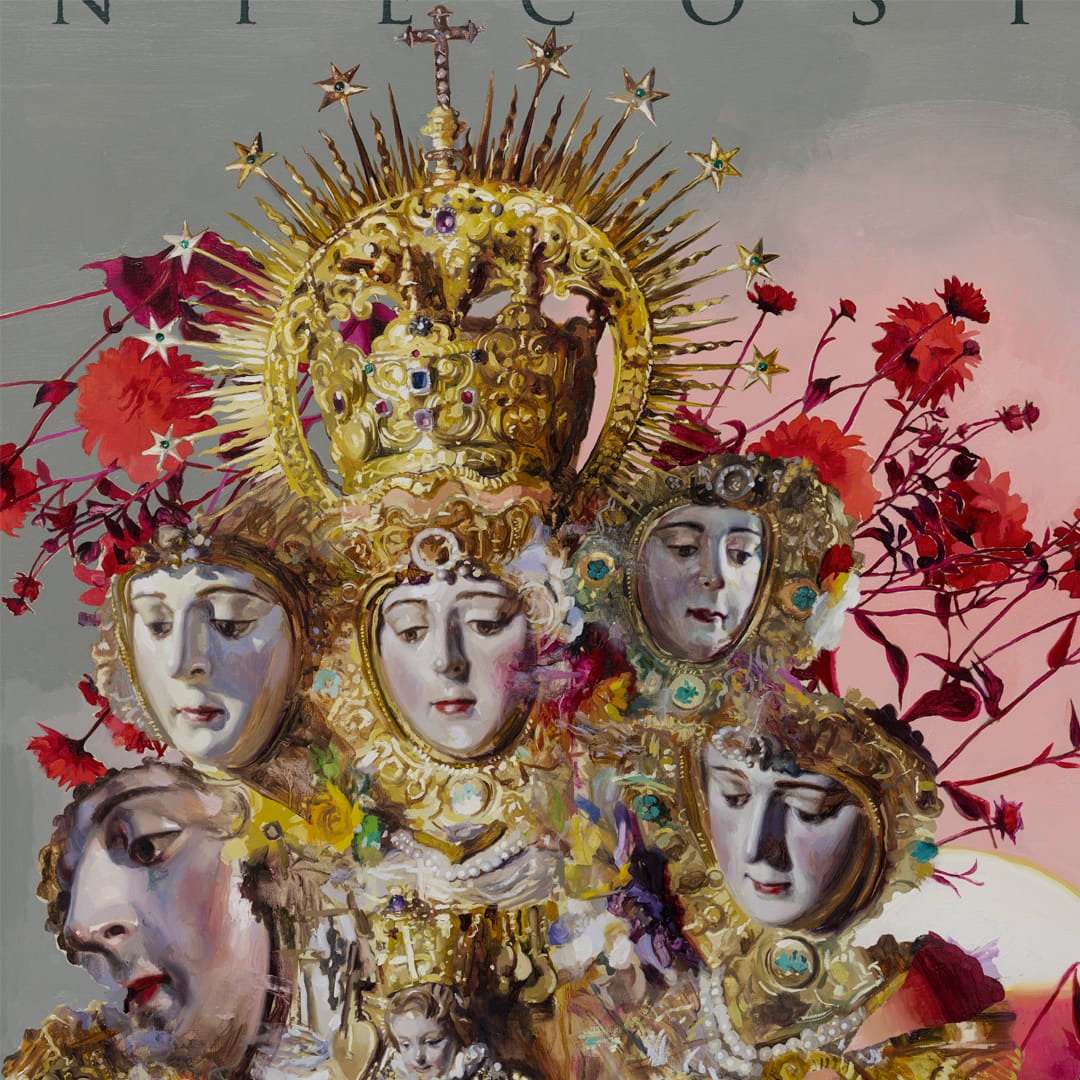 García Osorno ha explicado que en el cartel se reflejan siete miradas de la Virgen. Como las siete semanas de Pascua que conducen a Pentecostés, en las que el pueblo de Almonte, con su Hermandad Matriz y todas las hermandades rocieras van preparando el camino que les conduce a la Virgen. “Siete, porque los almonteños cuentan su vida por Venidas de su Madre al pueblo de Almonte”, ha subrayado. Un número que simboliza el equilibrio y la perfección y que se repite en el Viejo y Nuevo Testamento. Y son esas diversas miradas con las que vemos en nuestra imaginación a la Virgen cuando ya no estamos ante Ella en su Santuario, que han quedado en el cartel integradas en los semicírculos de sus ráfagas de punta de martillo.
