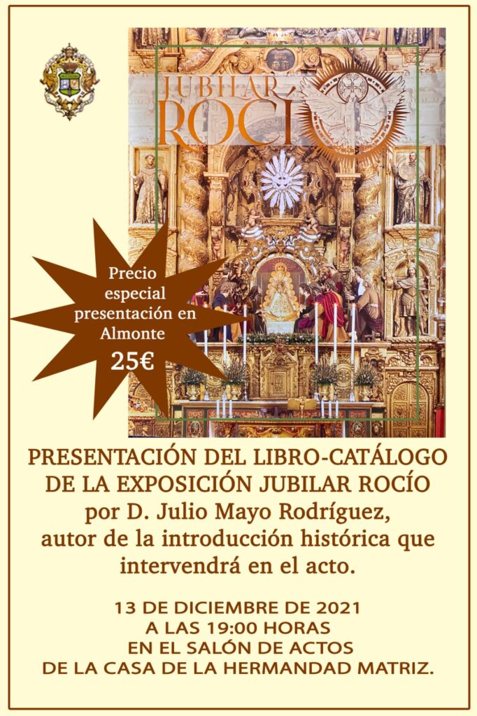 Hermandad Matriz – Presentación del libro catálogo de la Exposición «Jubilar Rocío» por D. Julio Mayo, autor de la introducción histórica que intervendrá en el acto. El precio del libro será, para esta ocasión, de 25 euros.