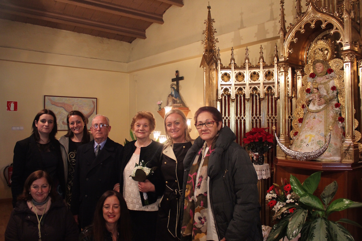 Pasado un tiempo las redes sociales hace que estemos más cerca de todo… y podemos estar en contacto aún sin conocernos. Sólo bastó contactar con laHermandad por facebbok y preguntar ¿Hacéis misa? Nos gustaría ir….y allí estábamos el domingo 28 de Diciembre para vivir uno de los días más felices(solo hace falta fijarse en la cara de mis padres en la foto junto al Simpecado de la 109) para Manuel y Remedios, sus hijas, yernos, nuera, nietos y sobrinos, todos los que pudimos ir …. Todos preguntándonos como a los 50 años sigue existiendo tanto cariño, tanto amor y como con coraje y talento unos padres pueden cambiar y mejorar la vida de sus hijas. Estamos lejos de nuestra tierra, pero tú, Virgen del Rocio estas cerca de nosotros, siempre ahí, sino ¿Cómo este día hubiera sido mejor? Toda laHermandad, los hermanos, su Presidenta Isabel, su actual Hermana Mayor Loli.. Parecía que habíamos estado con ellos siempre. Esto es el Rocio, se nota en el corazón. Gracias, gracias por este día, por haber estado todos juntos con esta Hermandad de Cornellá y sobre todo contigo Señora, gracias por darme esta familia y por tener el corazón lleno de arena, de marisma y de luz.