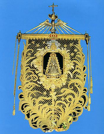 Medalla realizada en metal color plata, figurando en el centro de la misma la imagen de Ntra. Sra. con los atributos de Reina, flanqueada por dos hojas de palma enlazads, como símbolo de la Patrona de la ciudad, Ntra. Sra. de la Palma. La parte superior está adornada con una corona Real, sostenida por dos palomas con las alas abiertas. La inferior la termina con un escudo que lleva un castillo y las palmas, simbología del escudo de Algeciras. Fue realizada con un diseño de José Nono.