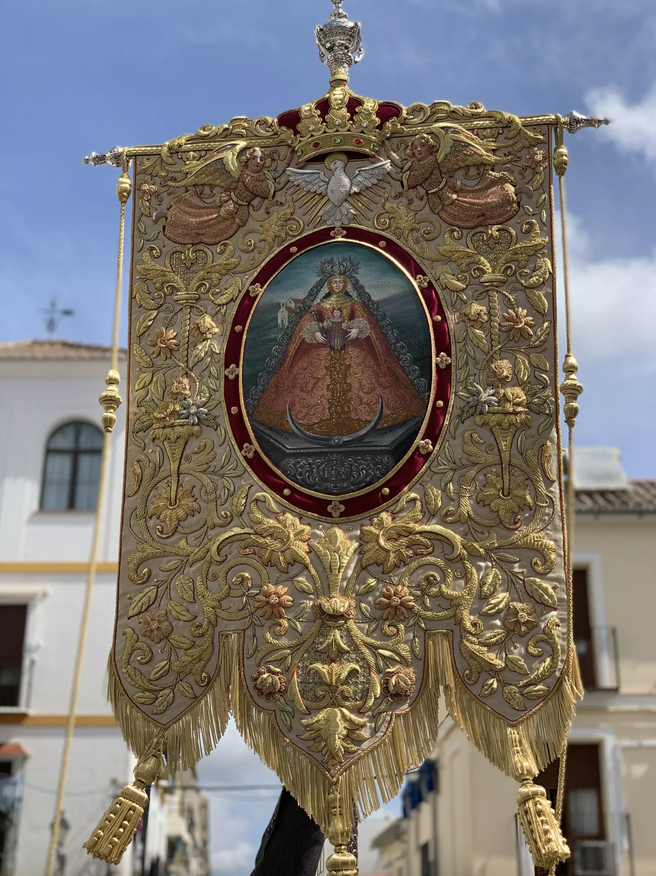 El 1 de Mayo miembros de nuestra Junta de Gobierno acompañan a nuestra madrina, la Hermandad de Sevilla, en el traslado de su Simpecado en carreta desde la catedral de Sevilla hasta su sede canónica, la Iglesia del Salvador. El Simpecado de la Hermandad de Sevilla había sido designado para presidir el altar de cultos del pregón de las Glorias de Sevilla.