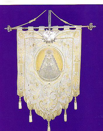 Confeccionado en Valencia y sufragado por los miembros fundadores y primeros hermanos, el Simpecado mantiene todo el sabor antiguo de esta clase de enseñas. Bordado en hilos de oro sobre tisú blanco, lleva un medallón central con la imagen de la Señora en relieve.