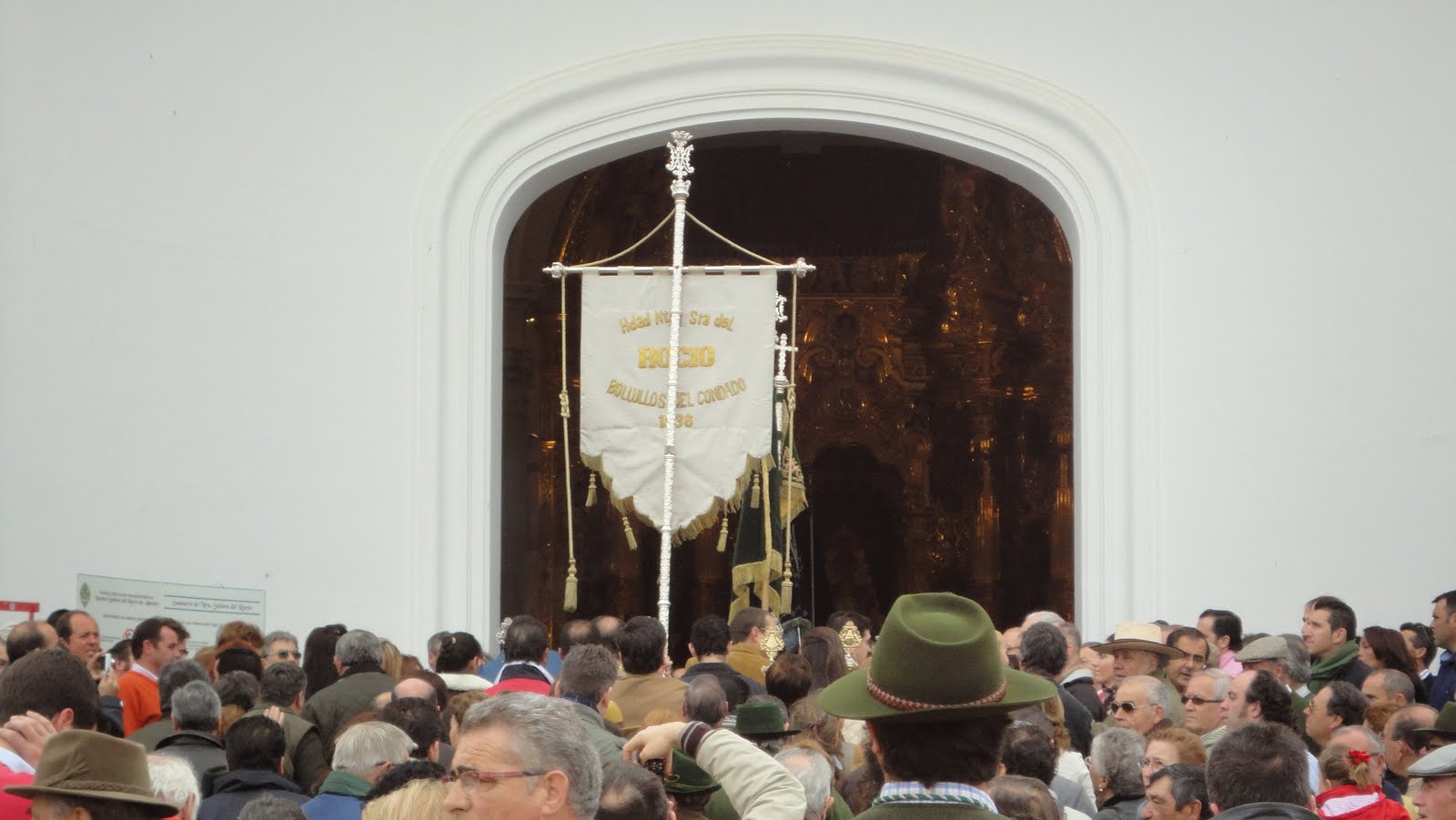 Hasta los años sesenta la humilde Hermandad solía pernoctar en casa arrendada por la Hermandad; siempre lo hacía en la calle donde alquilase casa el Hermano Mayor de aquel año. De ese modo, la carreta y el Simpecado quedaban expuestos en la puerta de la choza donde se congregaban todos los Hermanos;la vuelta a Bollullos la hacía el mismo lunes de Pentecostés, una vez pasada la Virgen por la esquina de la Hermandad de Hinojos ( calle Sanlúcar), hoy la Hermandad recibe a la Blanca Paloma en la esquina de la Hermandad de La Palma del Condado, al final de la calle Villamanrique. La Hermandad nuestra pues, tiene desde sus comienzos, unos barrios muy particulares: El Real Grande al fondo, calle del Sacrificio, calle Sanlúcar y el Acebuchal. Con sus 66 años de existencia la Hermandad de este pueblo del Condado nunca falto a su estación de Gloria en la Marisma, siendo guardado a su vuelta el Simpecado en la Parroquia de Santiago, en un magnifico y nuevo Altar, puesto que lo que no había en la Parroquia retablo ninguno, y solo existía un cuadro con dosel dorado de 2,50 m de alto por 1.05 de ancho, según inventario de 1.923, fue regalo de D. Carlos Pérez Álvarez. La Carreta se guardo durante muchos años en la Bodega Cooperativa actual que fue de los Pérez de Ayala, donde la arreglaban Antonio González («Antoñito el de la Escrúgula»), Manuel Salas Cruz («El Farruco»), Carmen Carrellán y Gloria Verdier que eran las camaristas; después paso unos años al chalet-bodega de D. José Celestino, pasando últimamente al final de la calle Padre Domínguez García, hasta que pasó a la actual Capilla regalo del solar por los Hermanos Ramos Vázquez, en calle Teniente Merchante nº 90.