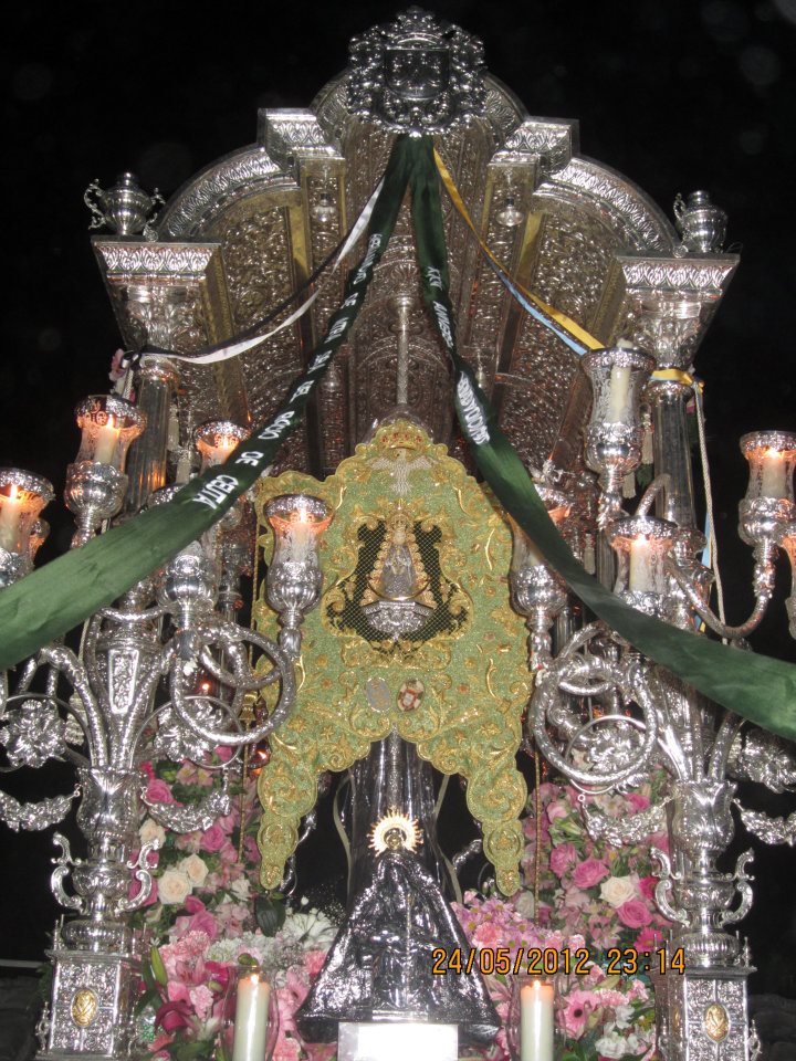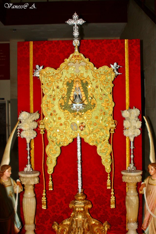 El nuevo Simpecado fue bendecido el dia 9 de mayo durante la celebración del primer día de triduo en Honor de Santa Maria del Rocío. Presidiendo la celebración el Rvdo. Padre David Gutierrez Dominguez. Fuente: Hdad. de Ceuta